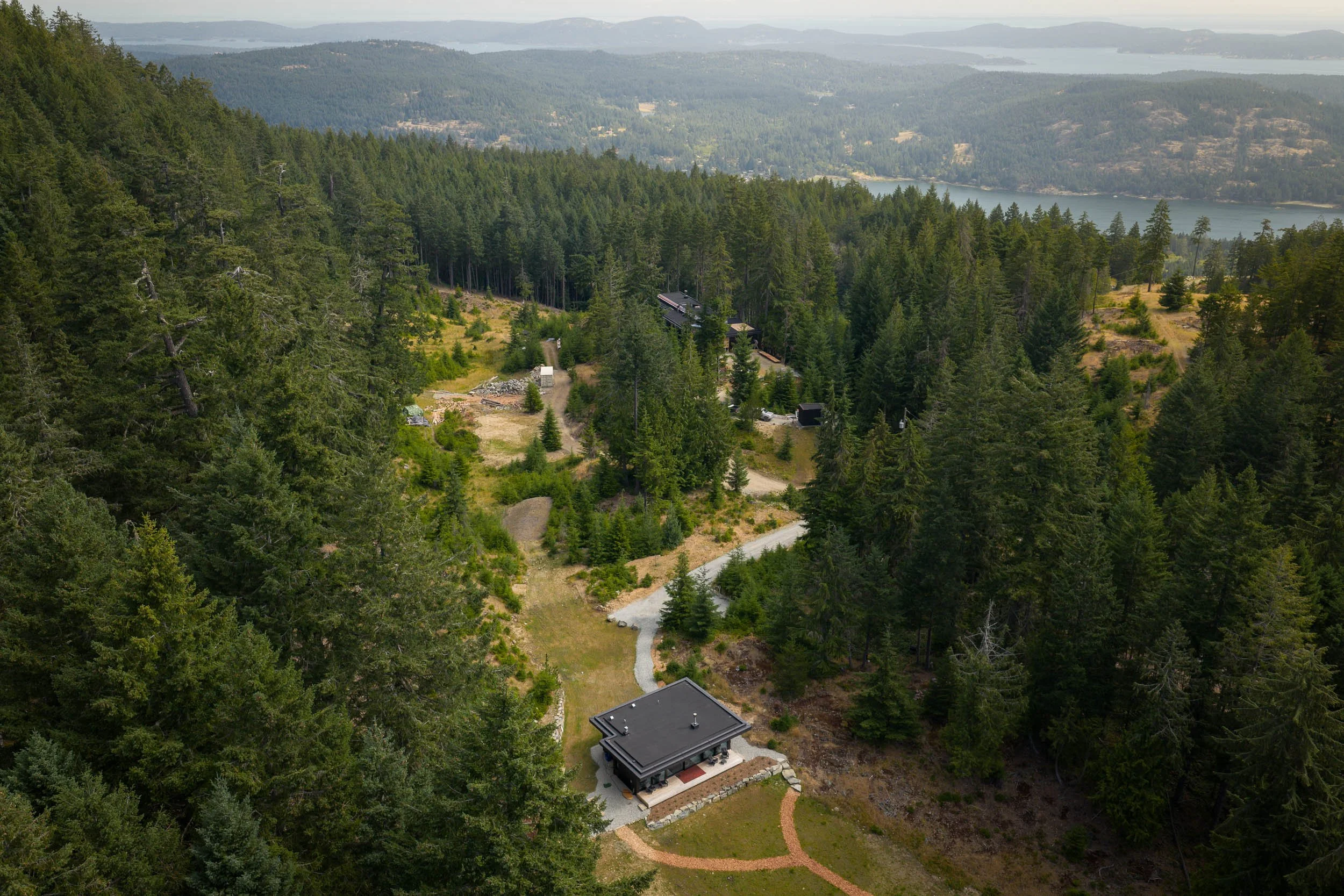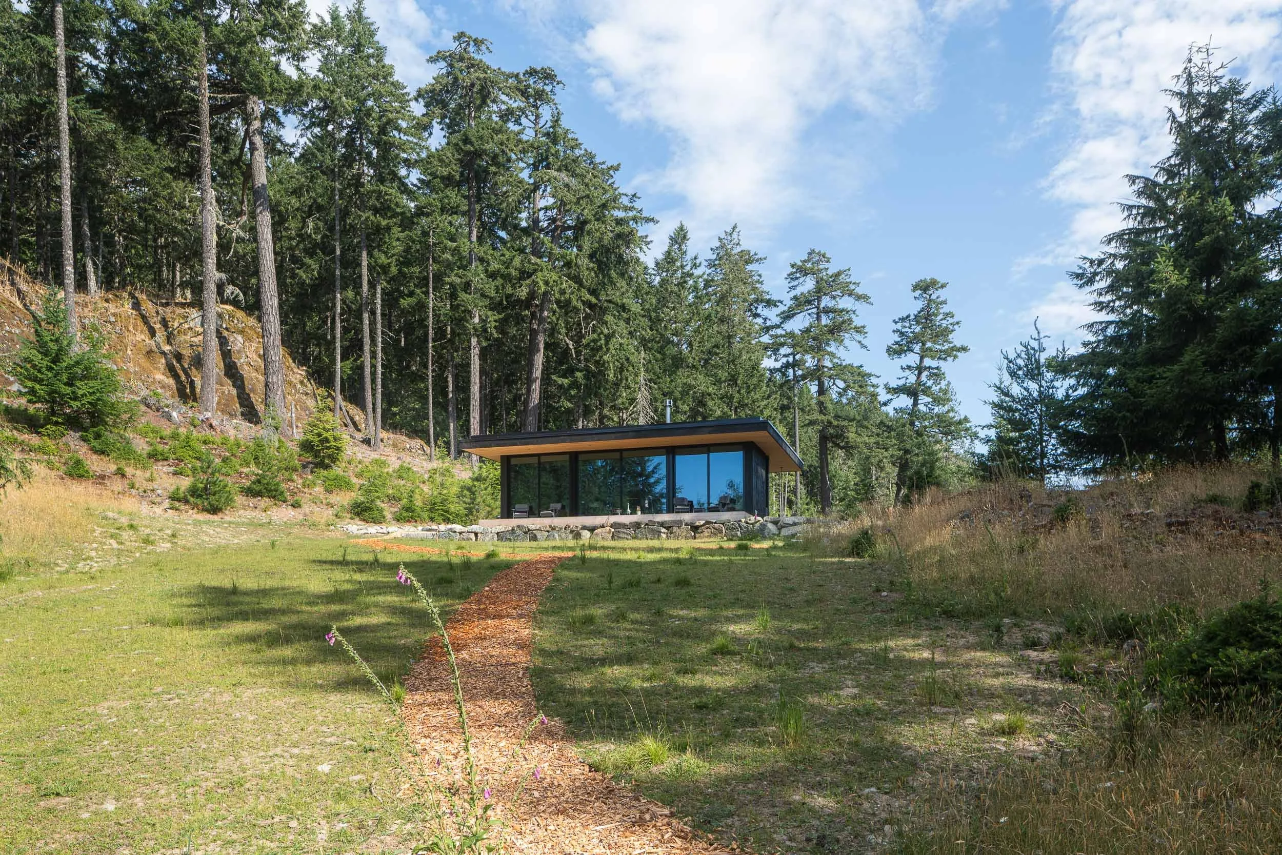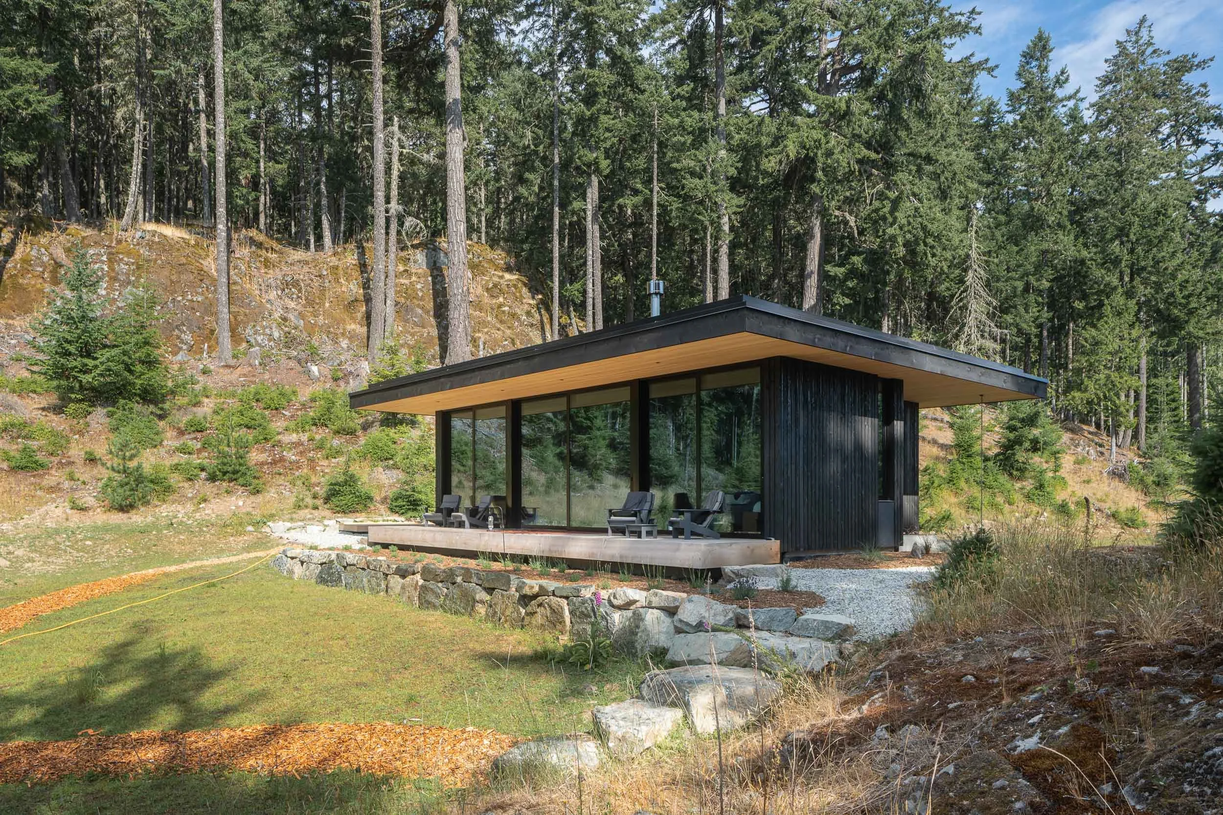 Skywater Cabin was the first project we completed on this stunning Salt Spring Island property, serving as the precursor to the more expansive. Skywater home that followed. Designed as a retreat to harmonize with the natural surroundings, the cabin integrates architectural windows and doors from The Window Merchant Co., showcasing the beauty and functionality of Reynaers' Masterline 8 and MasterPatio systems. The cabin is an intimate, efficient space with expansive glass windows that connect the interior with the breathtaking island landscape. The project emphasizes sustainable materials and energy-efficient solutions while offering panoramic views of the ocean.